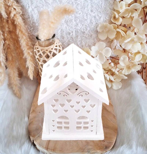 Découvrez l'élégance avec cette maison photophore blanche en résine minérale.
