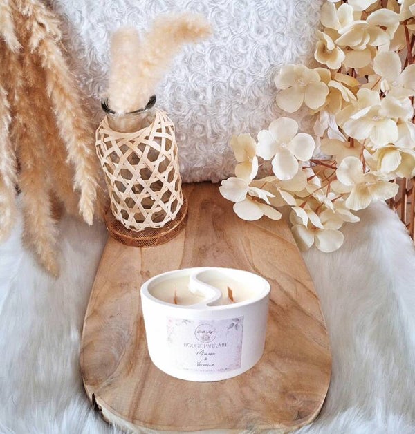 - Mèches en bois assurant une bonne combustion et une diffusion uniforme du parfum