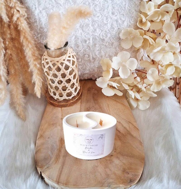 Découvrez nos bougies duo de senteurs pour 2 fois plus de plaisir coulées dans nos pots en résine minérale.